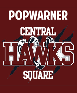 Printed clothing items available for the (Pop Warner Hawks) Central Square Central School District including long sleeve and short sleeve T-Shirts, jackets, hoodies, Polo shirts, caps and beanies.
